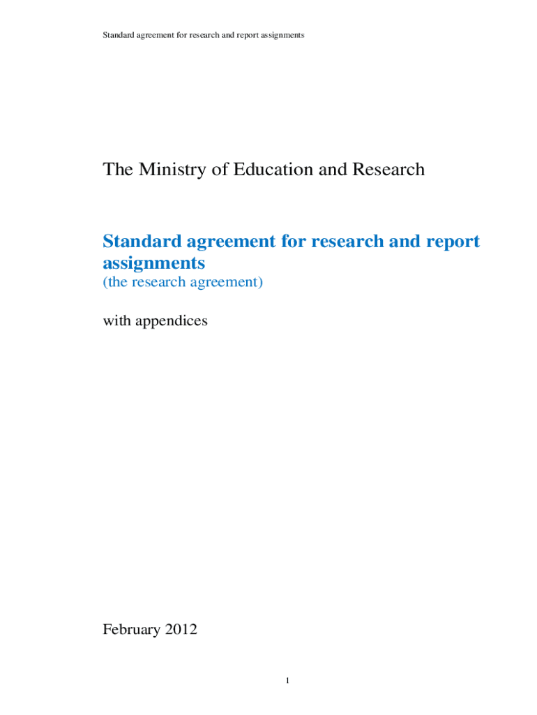 Standard agreement for research and report assignments Ministry of Education and ResearchStandard agreement for research and report assignments (the research agreement) with appendices February 20121Standard
