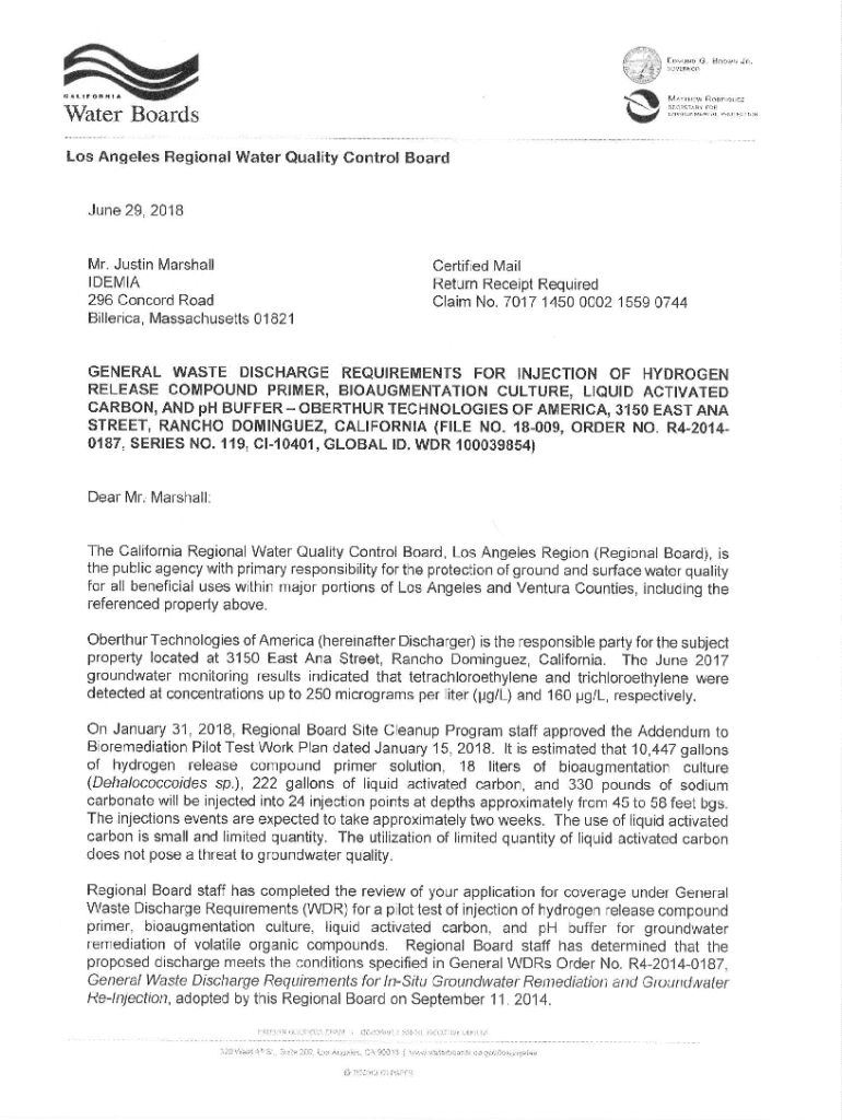 G.l............ Water Boards. E Of,1 1)NF OO\'f\'l:RNOHBROWN J R. M ATTIC A RODRIGUEZ Sr:CNF.:TAIL ROR HlVIRONMENfAI. 1\'H()IECllONLos Angeles Regional Water Quality Control Board June 29, 2018Mr.