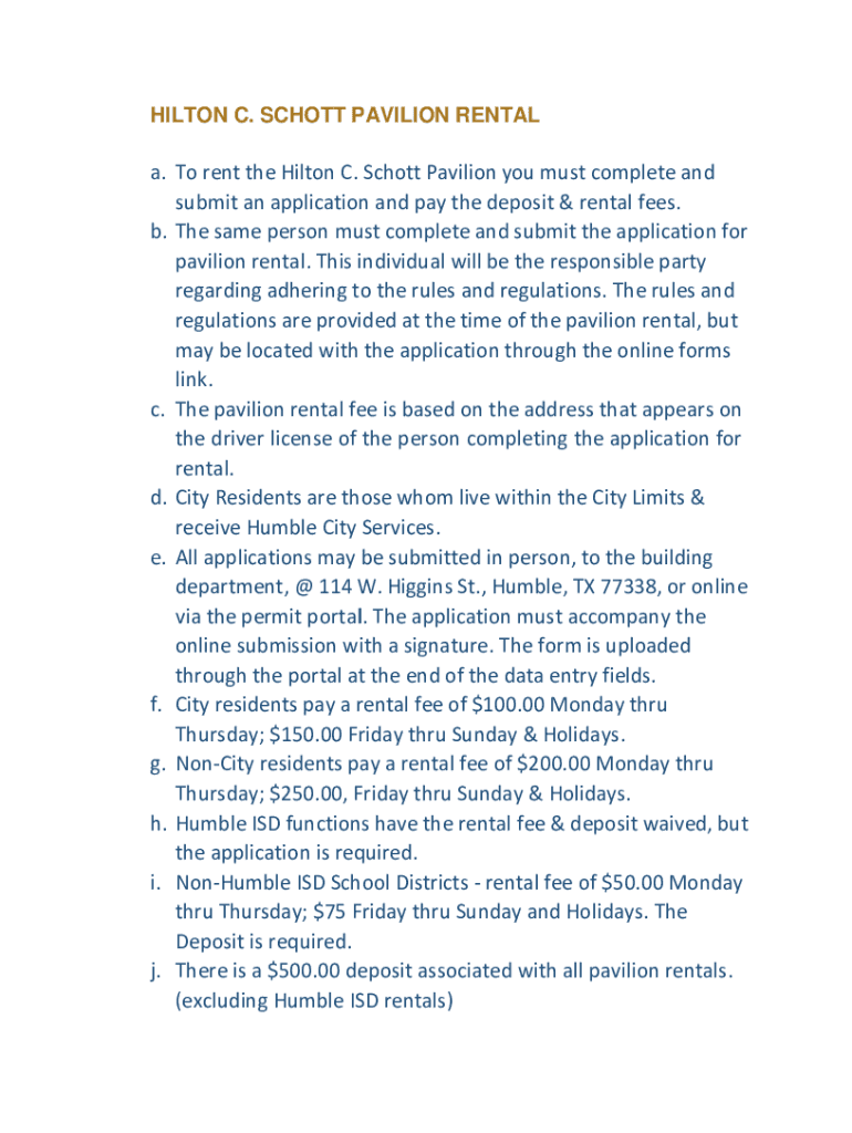 Get the free a. To rent the Hilton C. Schott Pavilion you must complete and ...