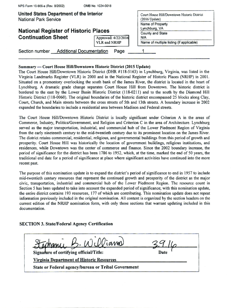 NPS Form 10900a (Rev. 8/2002)0 MB No. 10240018United States Department of the InteriorCourt House Hill/Downtown Historic District (2016 Update) National Park Servicemen of PropertyNational Register
