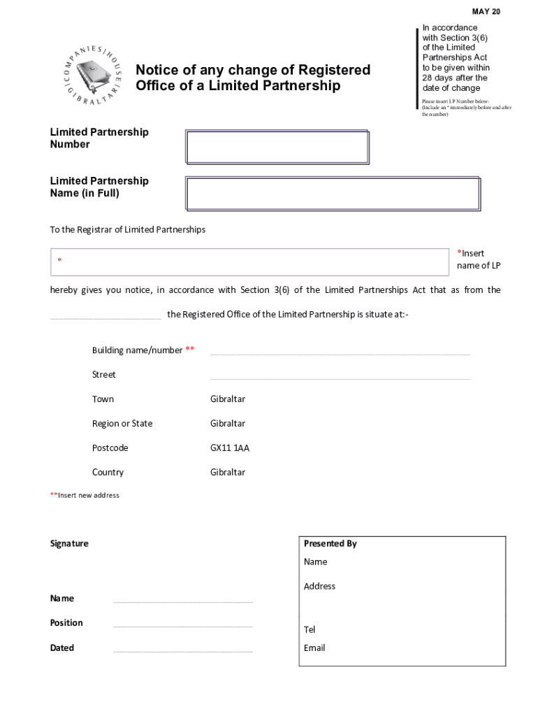 MAY 20Notice of any change of Registered Office of a Limited Partnership In accordance with Section 3(6) of the Limited Partnerships Act to be given within 28 days after the date of changeLimited