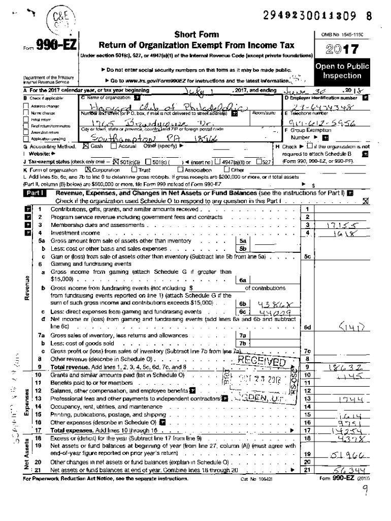 2949230011309 8 Form 990Short Form Return of Organization Exempt From Income Taxonomy No 15451150P017Under section 501(c), 527, or 4947(aX1) of the Internal Revenue Code (except private foundations)