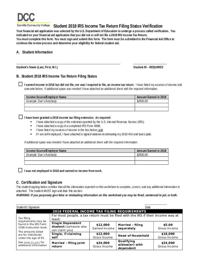 Student 2018 IRS Income Tax Return Non-Filing Status ...: frequently asked questions