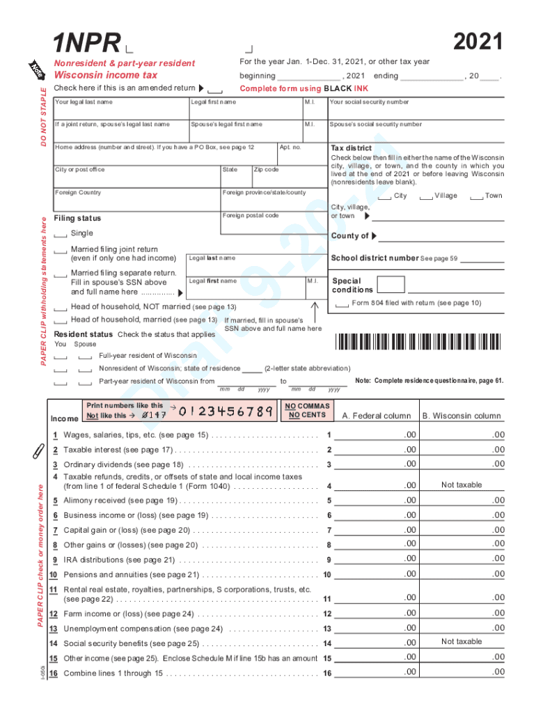 Get the free 2021 I-050 Form 1NPR-Nonresident & part-year resident - Wisconsin income tax...