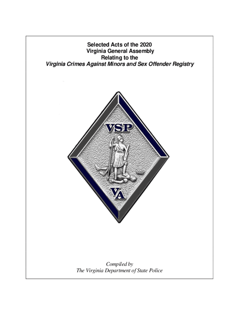 Selected Acts of the 2020 Virginia General Assembly Relating to the Virginia Crimes Against Minors and Sex Offender RegistryCompiled by The Virginia Department of State Polices volume of Selected