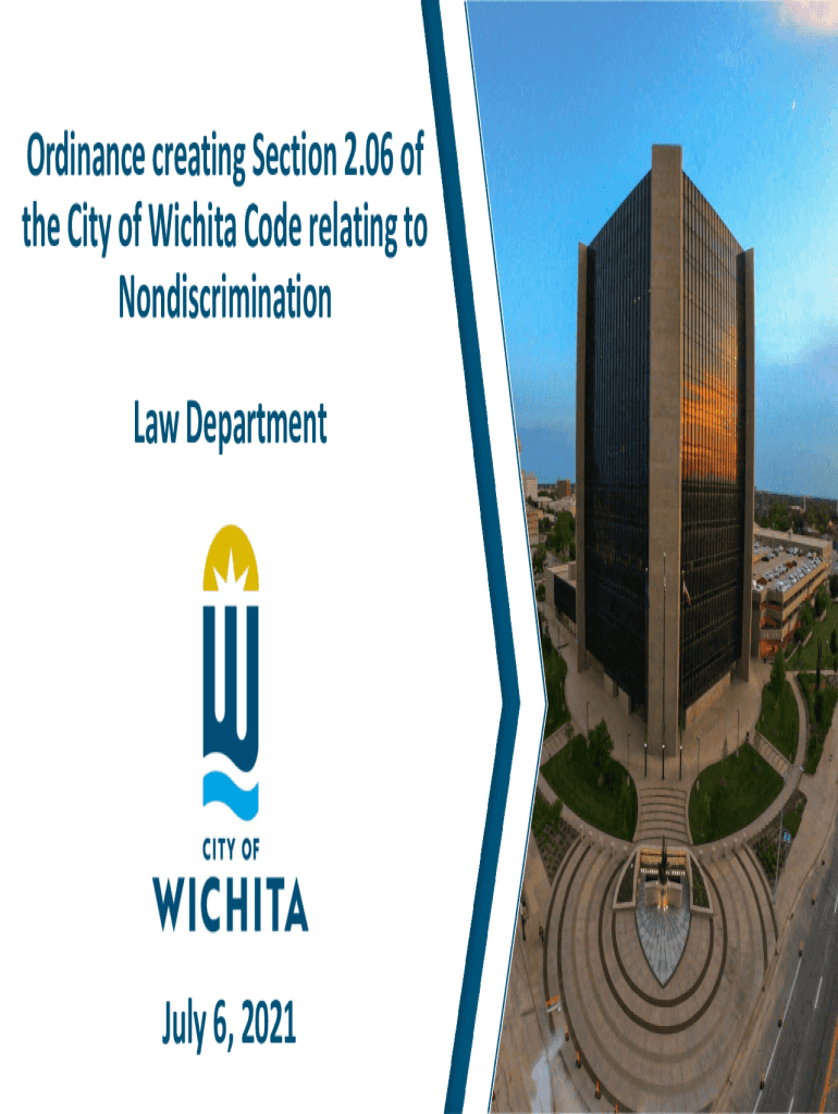 Ordinance creating Section 2.06 of the City of Wichita Code relating to Nondiscrimination Law Department July 6, 2021Background State and federal laws prohibit discrimination based on protected classes