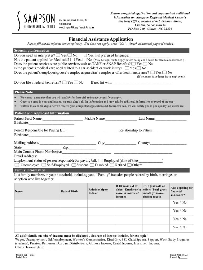 612 Seaman Street, Clinton, NC 910.590.8751 www.SampsonRMC.org/FinancialAssistanceReturn completed application and any required additional information to: Sampson Regional Medical Centers Business