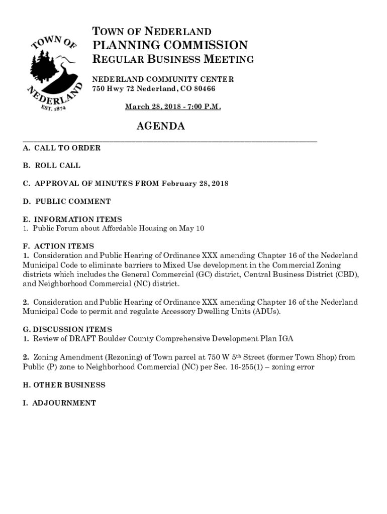 Get the free nederlandco.orgwp-contentfilesTOWN OF NEDERLAND PLANNING COMMISSION REGULAR BUSINESS M
