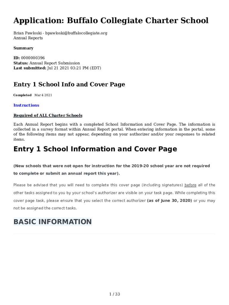 Application: Buffalo Collegiate Charter School Brian Pulaski bpawloski@buffalocollegiate.org Annual Reports Summary ID: 0000000396 Status: Annual Report Submission Last submitted: Jul 21 2021 03:21