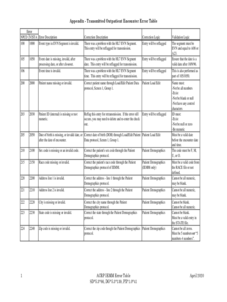 Get the free Appendix - Transmitted Outpatient Encounter Error Table 1 ACRP ...