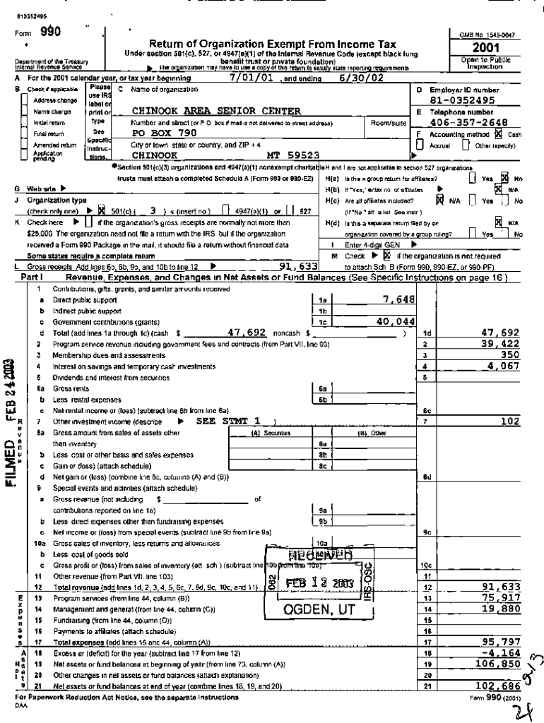 810753185Form 900Return of Organization Exempt From Income Tax2001Under section 501(c), 527, or 4947(a)(1) of the Internal Revenue Code (except black lung benefit trust or private foundation) 1AFor