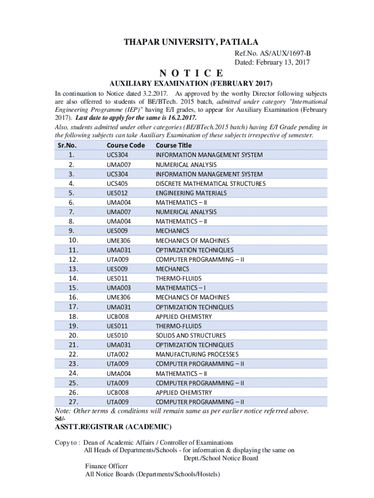 Get the free N O T I C E - Thapar Institute of Engineering & Technology