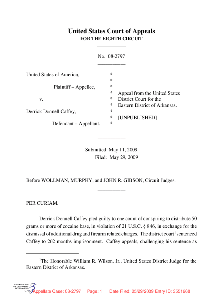 United States Court of Appeals FOR THE EIGHTH CIRCUIT No. 082797 United States of America, Plaintiff Appealed, v. Derrick Donnell Coffey, Defendant Appellant.* * * * * * * * *Appeal from the United