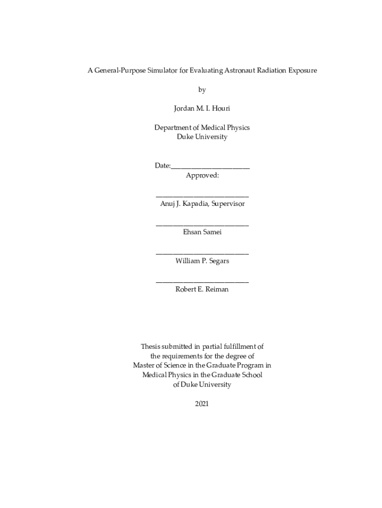A GeneralPurpose Simulator for Evaluating Astronaut Radiation Exposure by Jordan M. I. Houri Department of Medical Physics Duke UniversityDate: Approved: Anuj J. Keypad, Supervisor ENSAN Same William