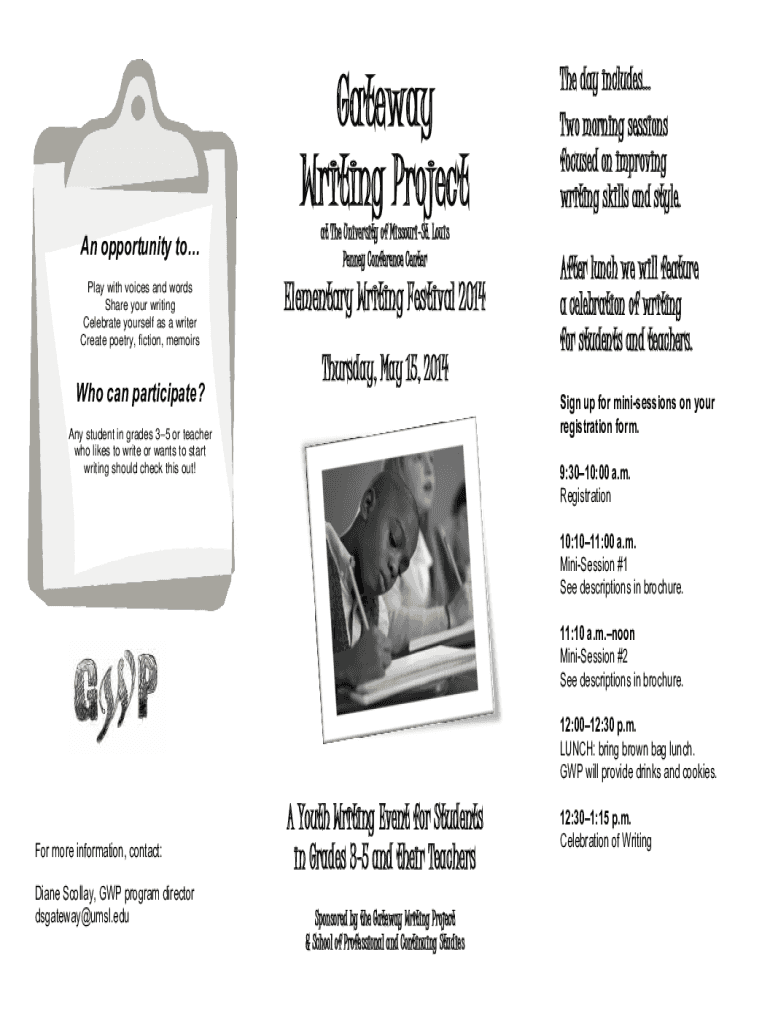 Gateway Writing Project An opportunity to Play with voices and words Share your writing Celebrate yourself as a writer Create poetry, fiction, memoirs can participate?at The University of Missouri