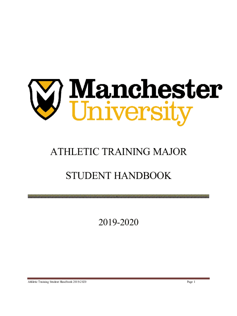ATHLETIC TRAINING MAJOR STUDENT HANDBOOK20192020Athletic Training Student Handbook 20192020Page 1TABLE OF CONTENTS Welcome and Overview of Major....................................................................................................3