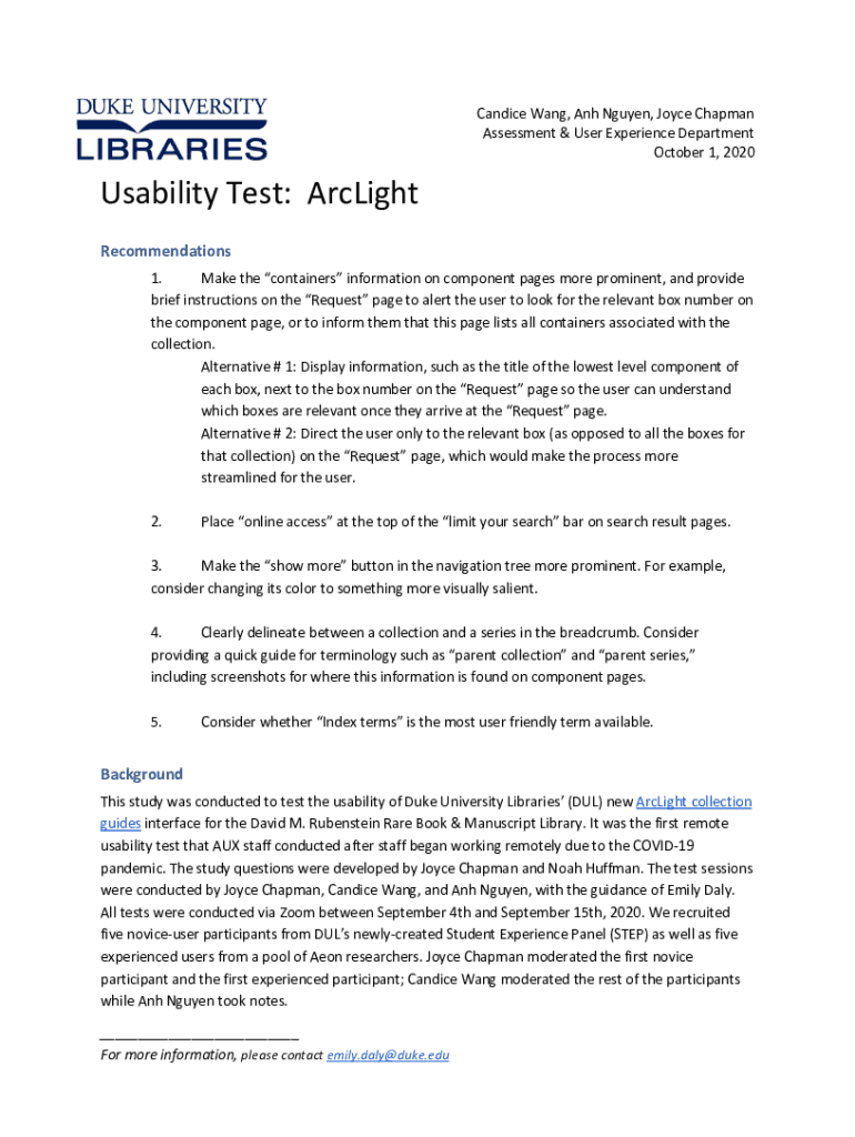 Get the free Browsing Assessment and User Experience by Title - DukeSpace - dukespace lib duke