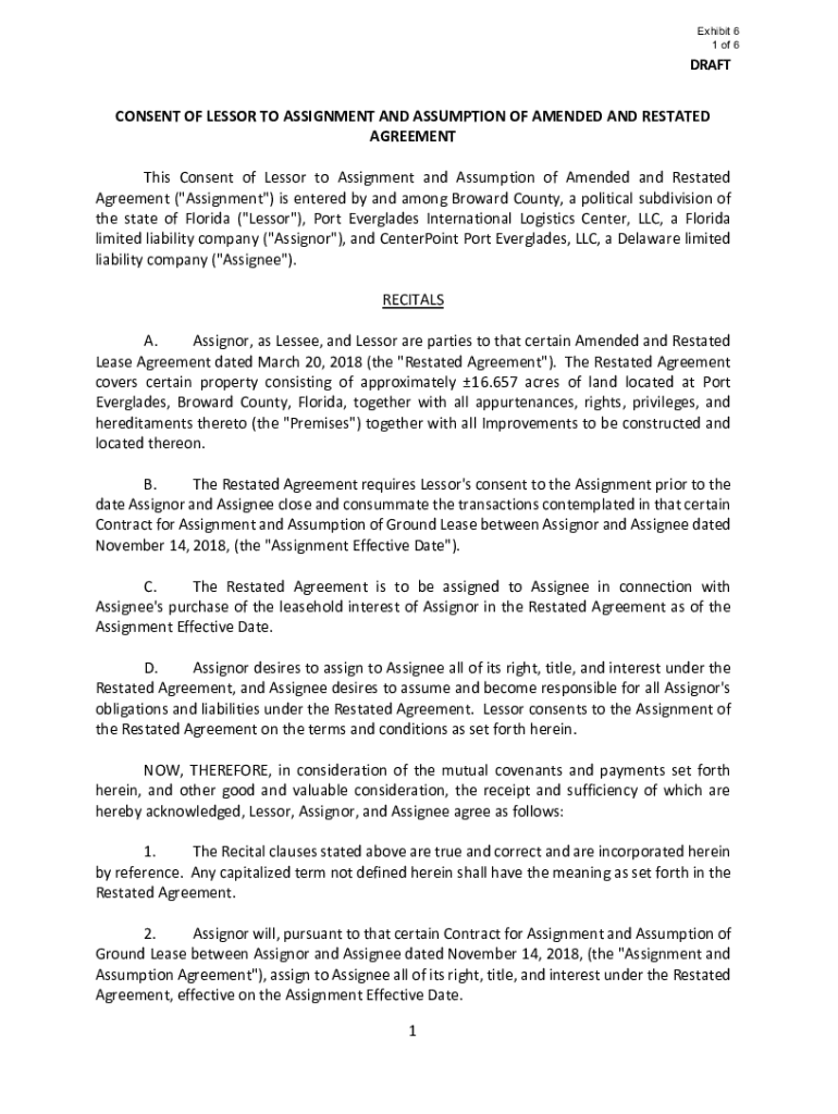 Exhibit 6 1 of 6DRAFTCONSENT OF LESSOR TO ASSIGNMENT AND ASSUMPTION OF AMENDED AND RESTATED AGREEMENT This Consent of Lessor to Assignment and Assumption of Amended and Restated Agreement (Assignment