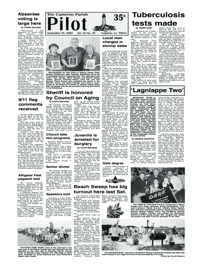 Get the free Pilot The Cameron Parish 35 Tuberculosis voting is large ...