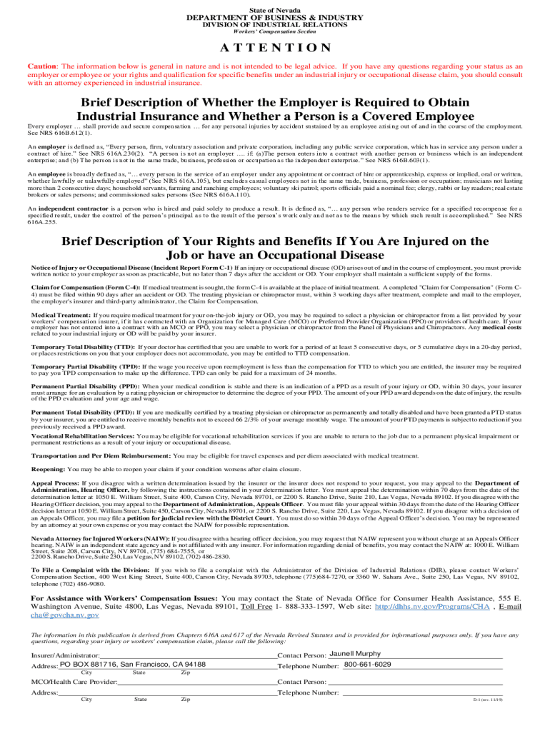 Get the free Workers Compensation Claim Kit - Nevada - Berkshire ...