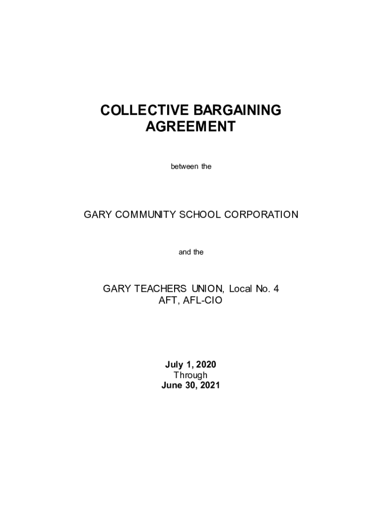 COLLECTIVE BARGAINING AGREEMENT between theory COMMUNITY SCHOOL CORPORATION and theory TEACHERS UNION, Local No. 4 AFT, AFLCIOJuly 1, 2020 Through June 30, 2021ARTICLE I RECOGNITION The Gary Community