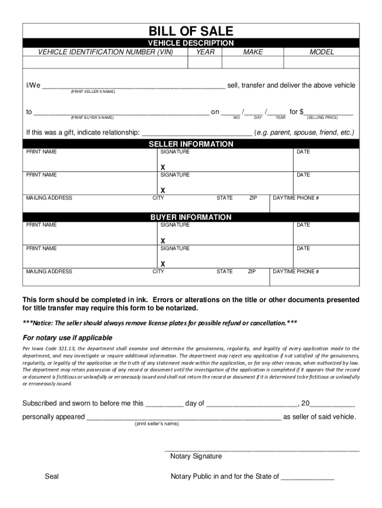 Who Needs the Iowa Vehicle Bill of Sale?