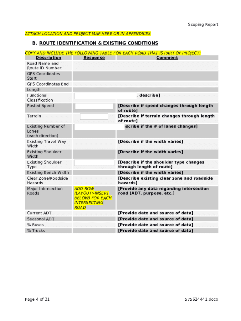 How to fill out Design Scoping template. Highway Design report