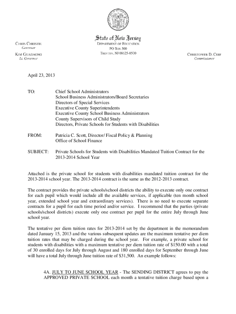 April 23, 2013TO:Chief School Administrators School Business Administrators/Board Secretaries Directors of Special Services Executive County Superintendents Executive County School Business Administrators