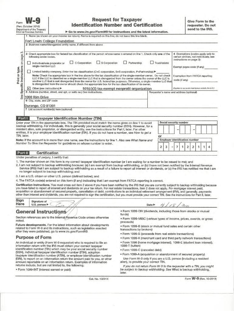 FormW9Request for Taxpayer Identification Number and Certification Rev. October 2018) Department of the Treasury Internal Revenue Service., Give Form to the requested not send to the IRS. Go to www.irs.gov/FormW9