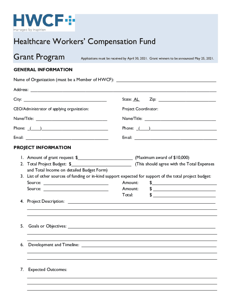 Get the free Healthcare Workers Compensation Fund Proposed Grant ...