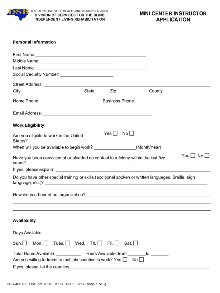 APPLICATIONDIVISION OF SERVICES FOR THE BLIND