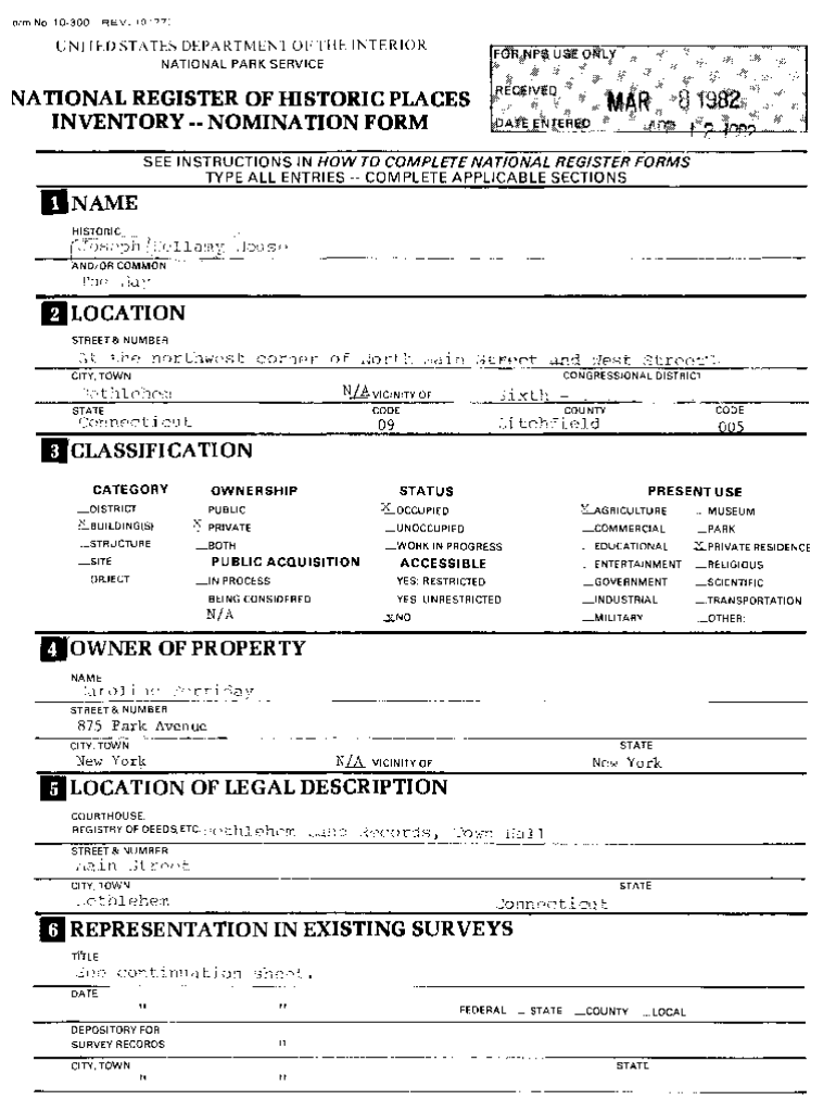 ORM No. 10300REV. (9/77)UN1TEDSTATES DEPARTMENT OF THE INTERIOR NATIONAL PARK SERVICENATIONAL REGISTER OF HISTORIC PLACES INVENTORY NOMINATION FORM SEE INSTRUCTIONS IN HOW TO COMPLETE NATIONAL REGISTER