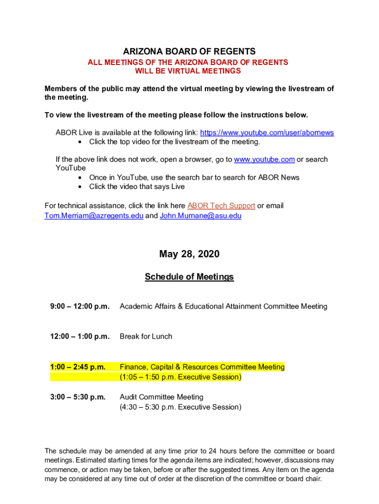 Get the free Arizona Board of Regents to hold virtual special board ... - public azregents
