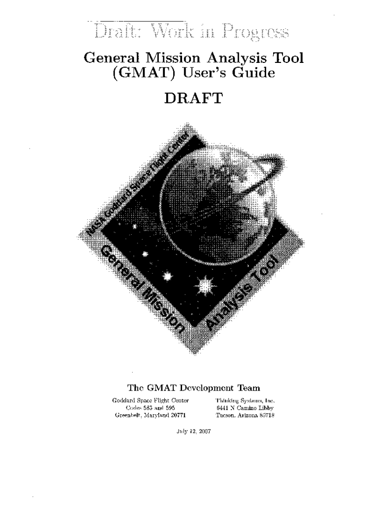 General Mission Analysis Tool (GMAT) User\'s GuideDRAFTThe GMAT Development Team Goddard Space Flight Center Codes 583 and 595 Greenbelt, Maryland 20771Thinking Systems, Inc. 6441 N Can lino Libby