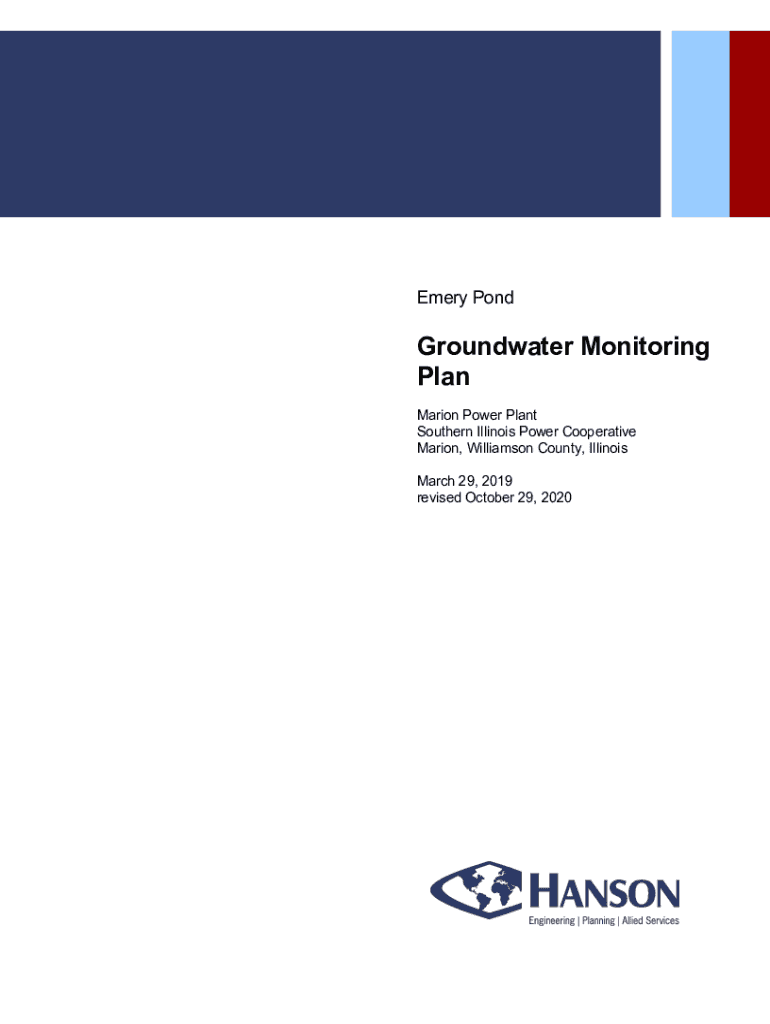 Emery PondGroundwater Monitoring Plan Marion Power Plant Southern Illinois Power Cooperative Marion, Williamson County, Illinois March 29, 2019, revised October 29, 2020Groundwater Monitoring Plan