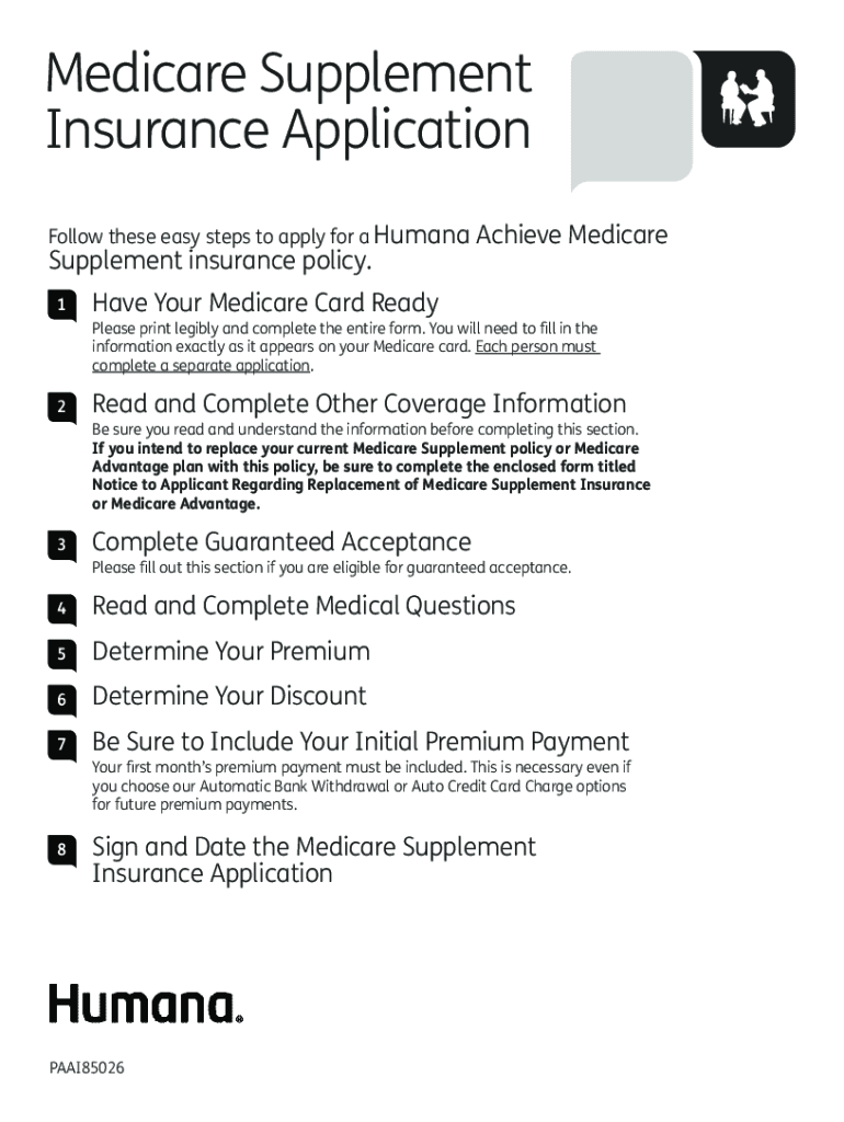 Medicare Supplement Insurance Application Follow these easy steps to apply for a HumanaSupplement insurance policy. 1Achieve Medicare Your Medicare Card Ready Please print legibly and complete the