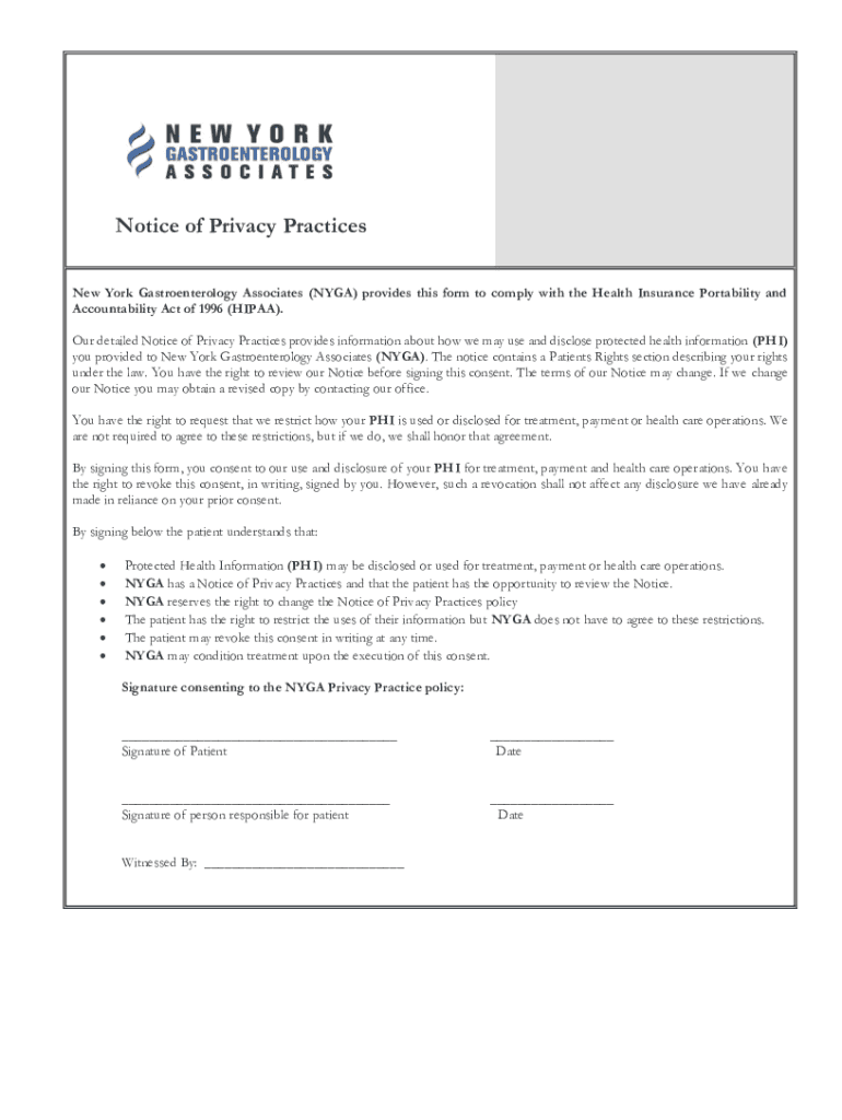 Notice of Privacy Practices New York Gastroenterology Associates (NGA) provides this form to comply with the Health Insurance Portability and Accountability Act of 1996 (HIPAA). Our detailed Notice