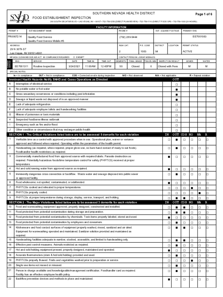 SOUTHERN NEVADA HEALTH DISTRICT Page 1 of 6FOOD ESTABLISHMENT INSPECTION280 SOUTH DECATUR BLVD LAS VEGAS, NV 89107 7027591258 (DIRECT PLAN REVIEW) 7027591110 (DIRECT FOOD OPS 7027591000 (24 HOURS)FACILITY