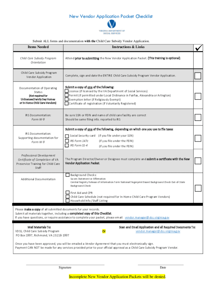 Get the free New Vendor Application Packet Checklist - Virginia