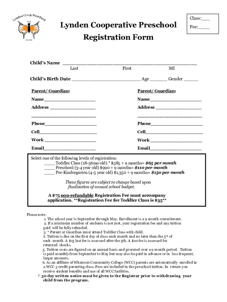 Get the free www.lyndenco-oppreschool.comuploads2Class: Lynden Cooperative Preschool Fee: Registr...