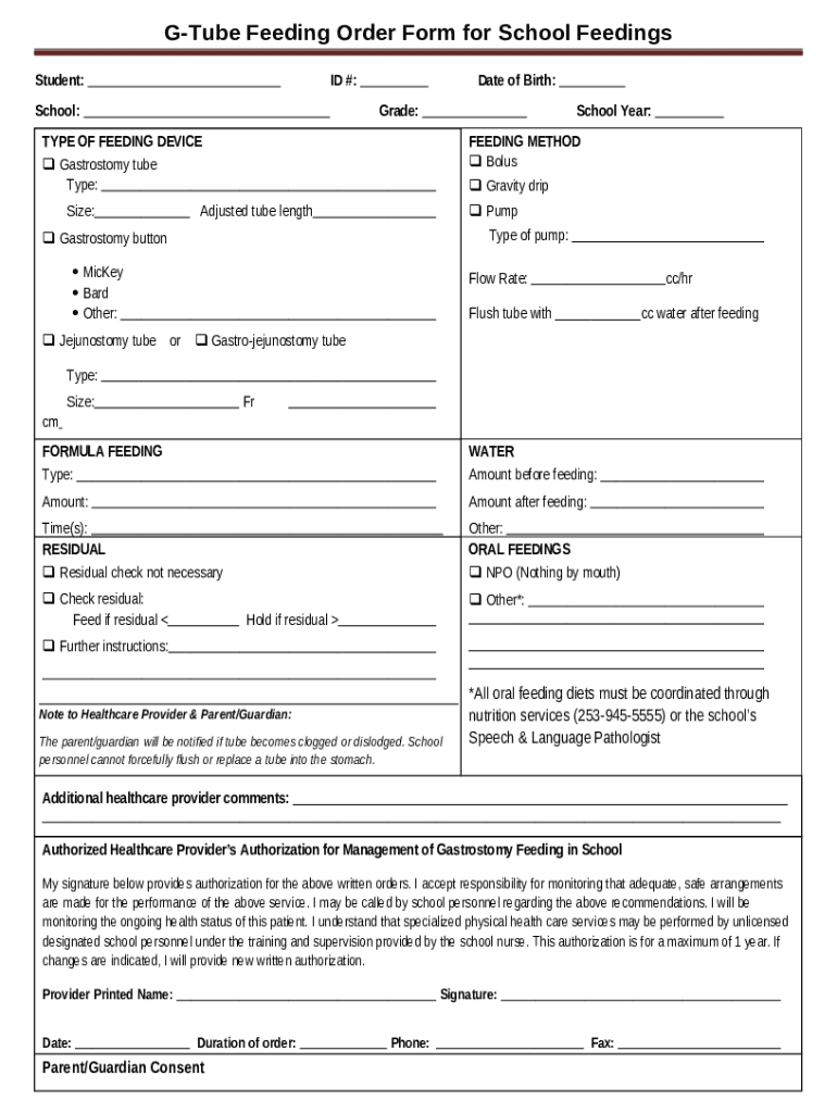What is G-Tube Feeding Order for School Feedings Form?