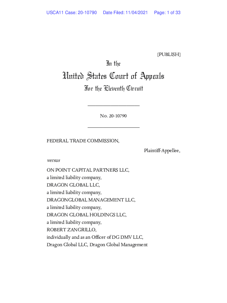 USCA11 Case: 2010790Date Filed: 11/04/2021Page: 1 of 33 PUBLISH In reunited States Court of Appeals For the Eleventh Circuit No. 2010790 FEDERAL TRADE COMMISSION, PlaintiffAppellee, versus ON POINT