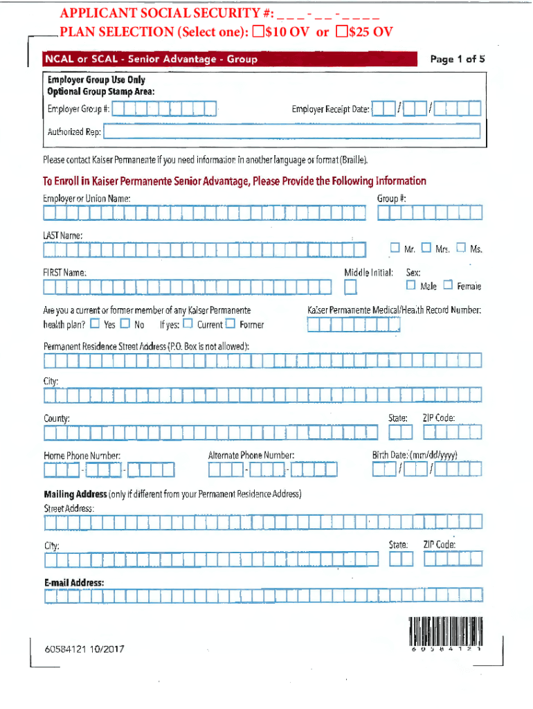 To fill out the Kaiser Permanente Senior Advantage form, you will need the following information: