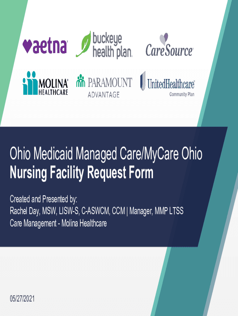 Ohio Medicaid Managed Care/Mylar Ohio Nursing Facility Request Form Created and Presented by: Rachel Day, MSW, LISTS, CASM, CCM Manager, MMP LESS Care Management Molina Healthcare05/27/2021Regulations