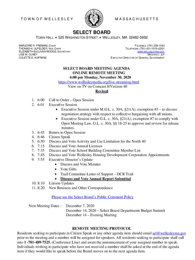 TOWN OF WELLESLEYMASSACHUSETTSSELECT BARDSTOWN HALL 525 WASHINGTON STREET WELLESLEY, MA 024825992 MARJORIE R. FREEMAN, CHAIR THOMAS H. LEADER, VICE CHAIR ELIZABETH SULLIVAN WOODS, SECRETARY LIFE M.
