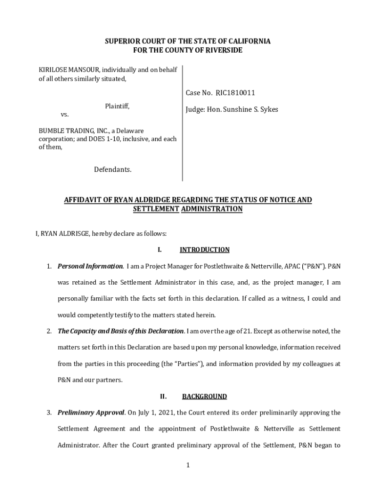 Get the free Affidavit of Settlement Administrator