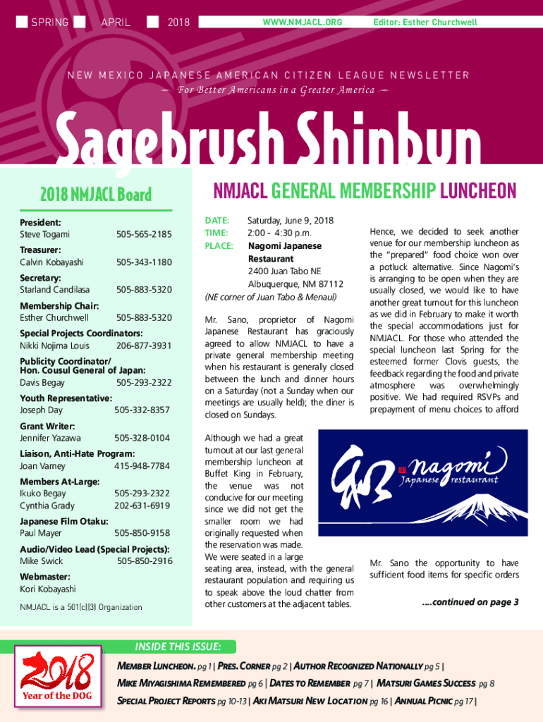 Get the free NEW MEXICO JAPANESE AMERICAN CITIZEN LEAGUE ... - NMJACL