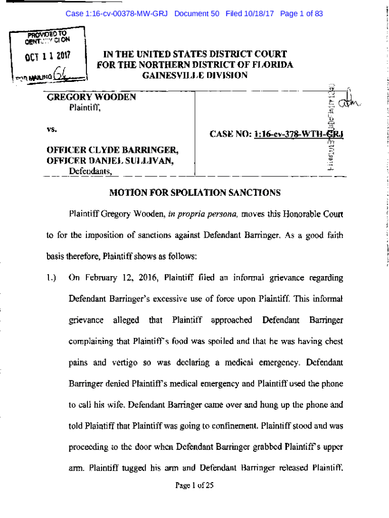 Case 1:16cv00378MWGRJ Document 50 Filed 10/18/17-Page 1 of 83 PR(MDE OTO CENT;;: ',1 C ONOC1 11 ZO1 1et)q t. But 'IG.ME (: :IN THE UNITED STATES DISTRICT COURTIER THE NORTHERN DISTRICT OF FLORIDA