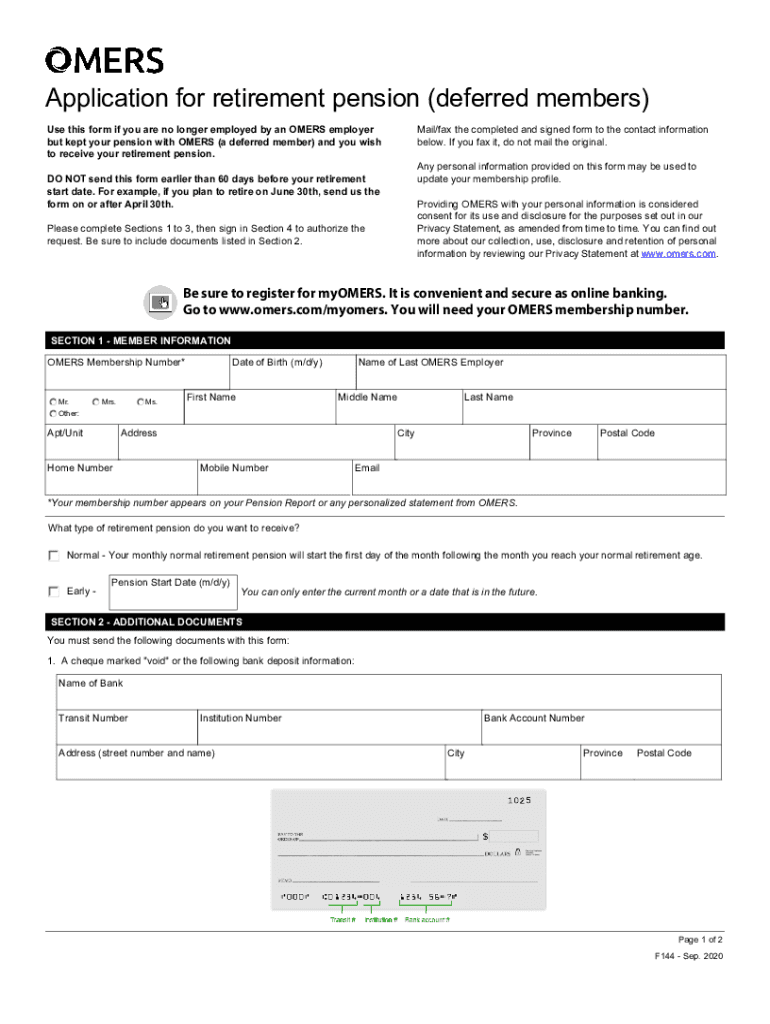 Get the free Online Form 144 - omers Fax Email Print - pdfFiller