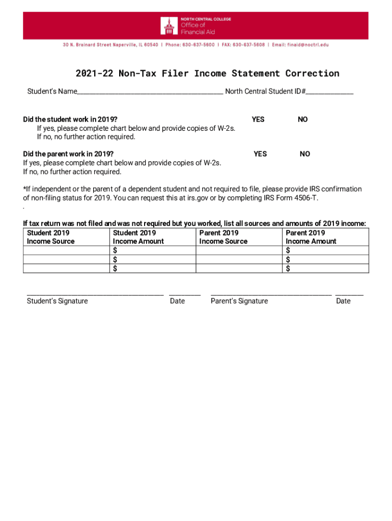 Get the free 2021-22 Non-Tax Filer Income Statement Correction